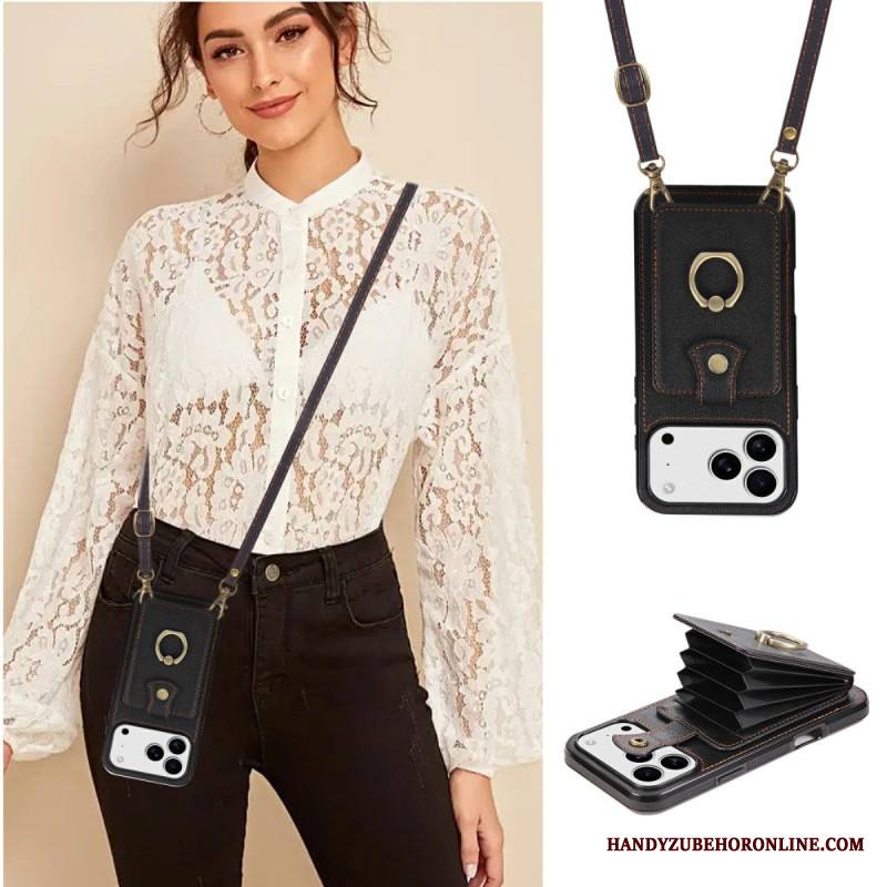 Case iPhone 17 Pro Max Puhelinkuoret Nahkakuvioinen Korttikotelo Ja Rannehihna