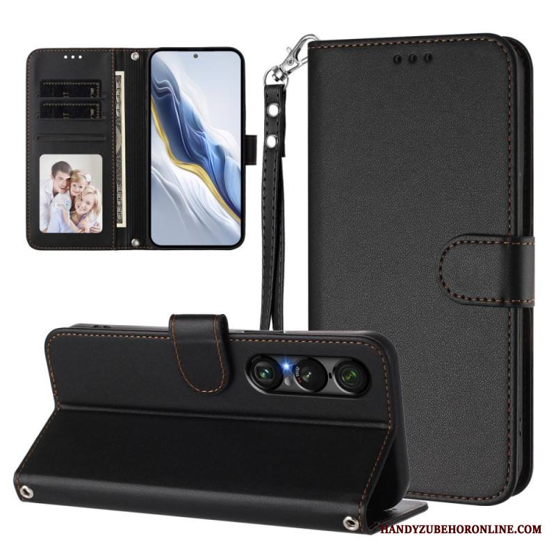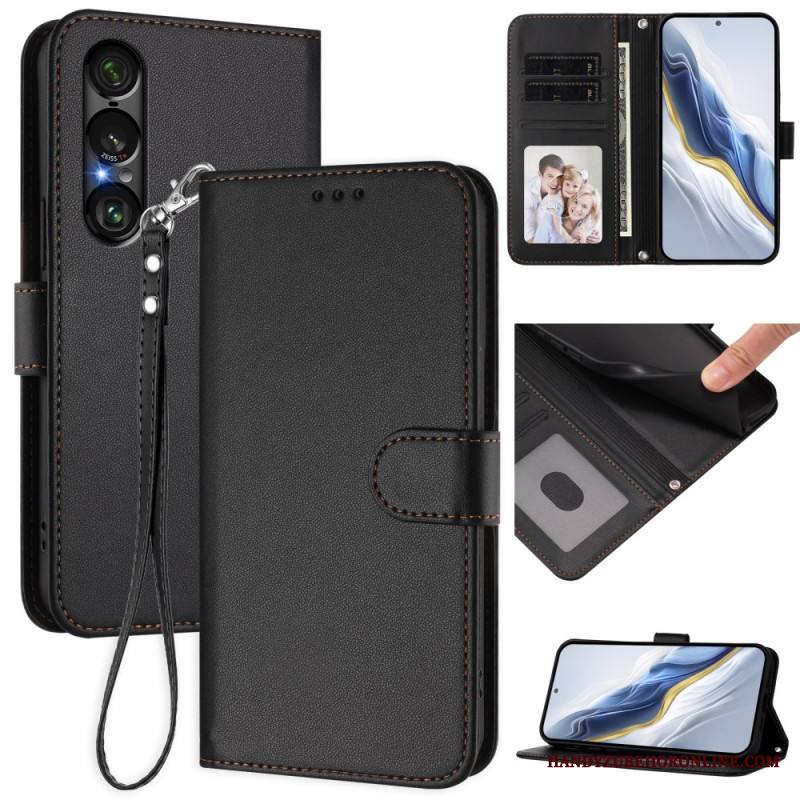 Kotelot Sony Xperia 1 Vii Nahkaefekti Ja Nauha Suojakuori