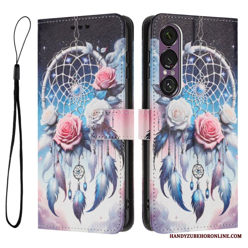 Nahkakotelo Sony Xperia 1 Vii Violetit Ruusut
