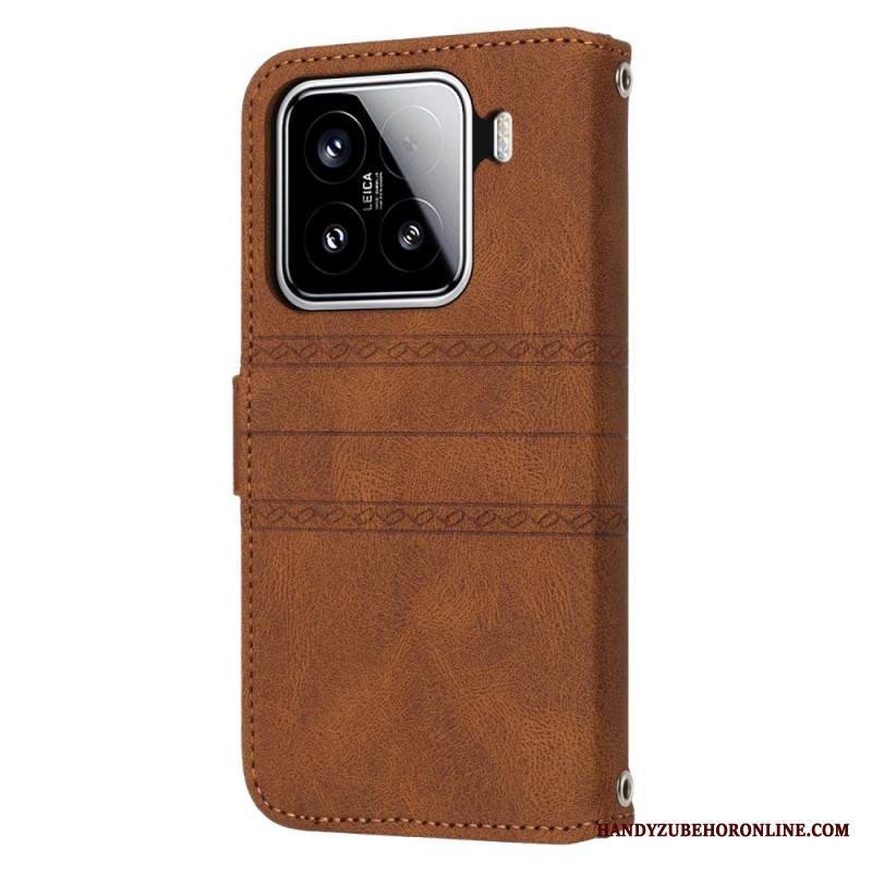Kotelot Xiaomi 15 Mokkanahkakuvio Viivoilla Ja Raidoilla