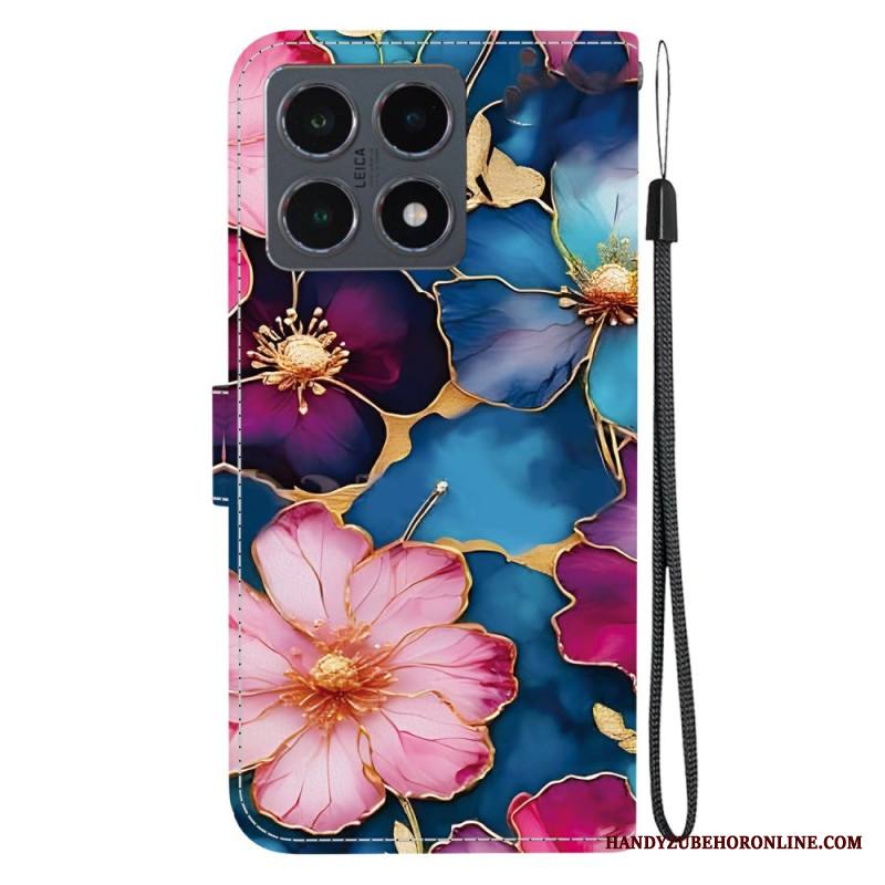 Kotelot Xiaomi 15t Siniset Ja Kultaiset Kukat