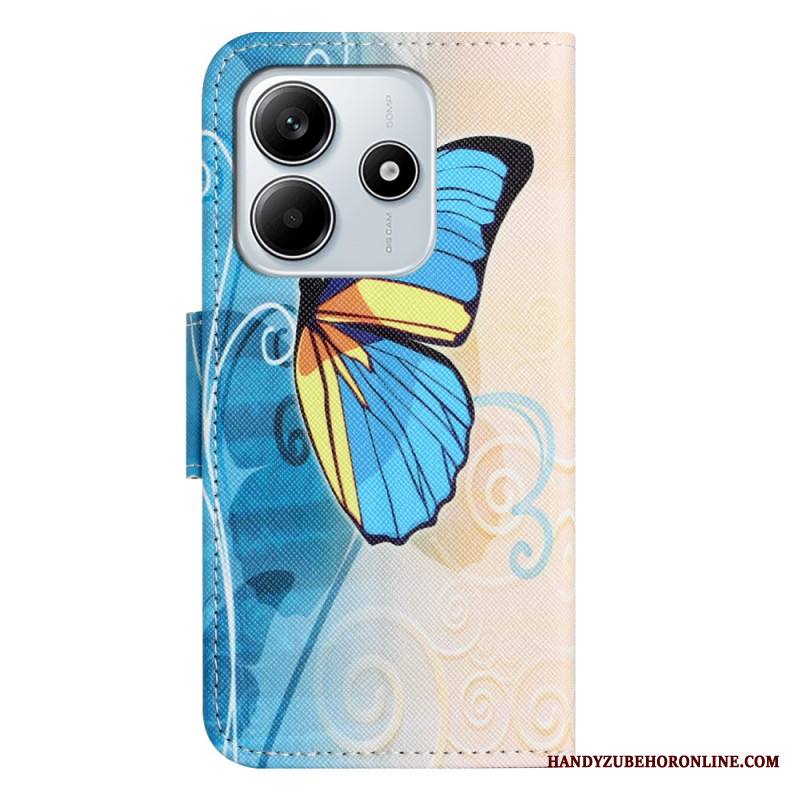 Kotelot Xiaomi Redmi Note 14 4g Sininen Perhonen Ja Kukkia