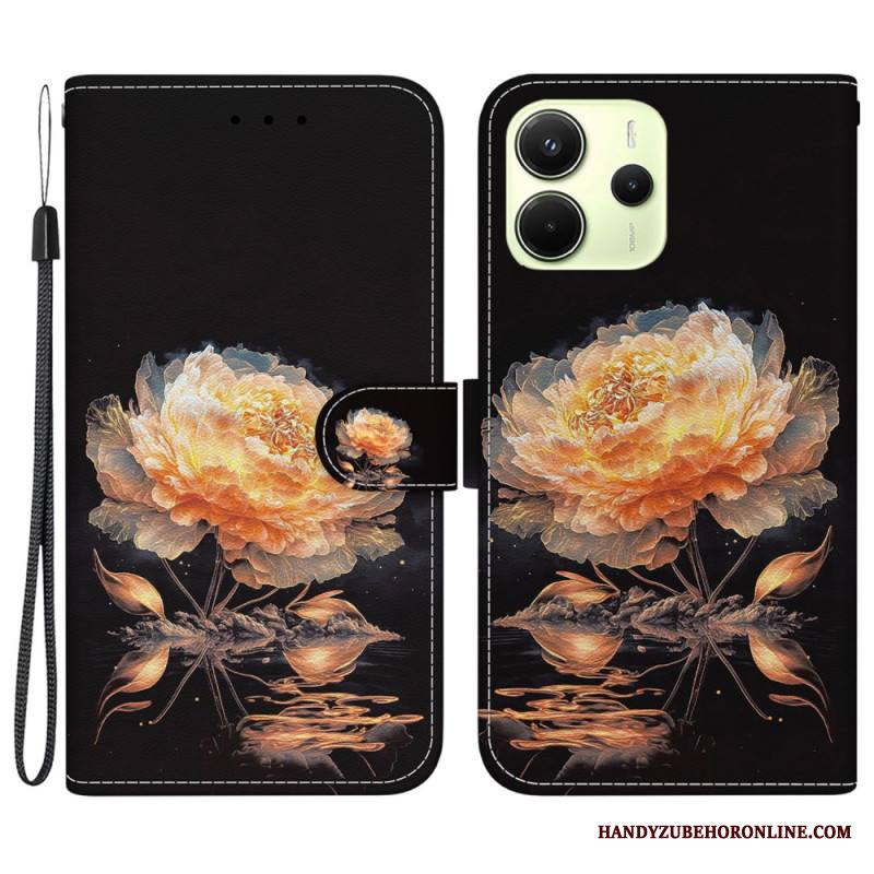 Kotelot Xiaomi Redmi Note 14 4g Valkoisia Kukkia Hihnalla