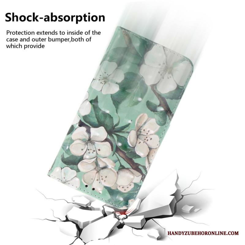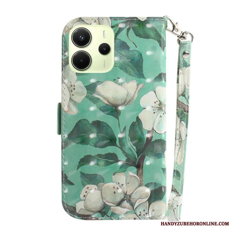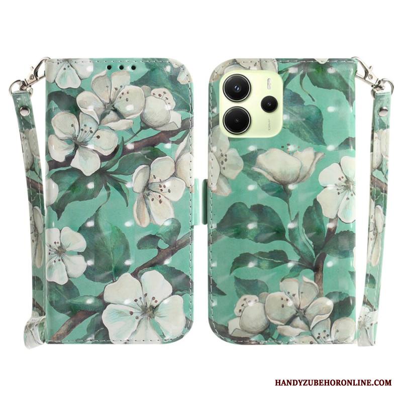 Kotelot Xiaomi Redmi Note 14 4g Valkoisia Kukkia Hihnalla