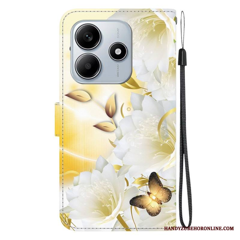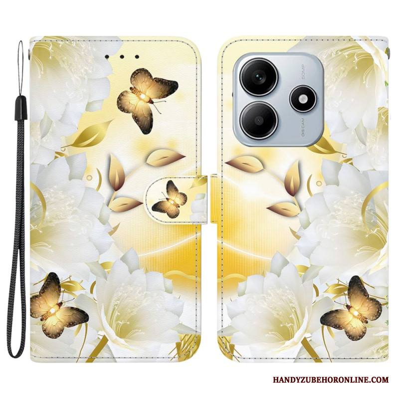 Kotelot Xiaomi Redmi Note 14 5g Puhelinkuoret Kultaiset Perhoset Ja Valkoiset Kukat