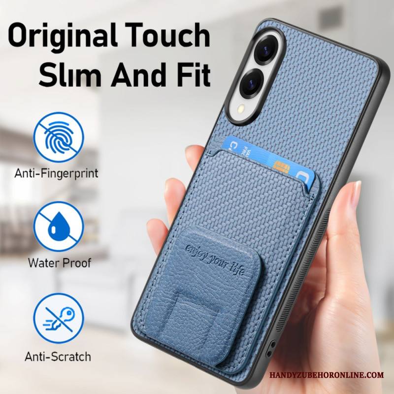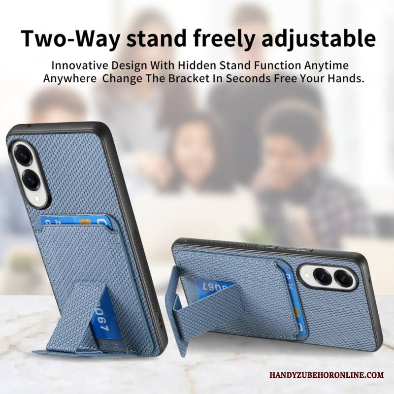 Kuori Samsung Galaxy S25 5g Edge Hiilikuitutekstuurilla Varustettu Korttikotelo Ja Integroitu Jalusta