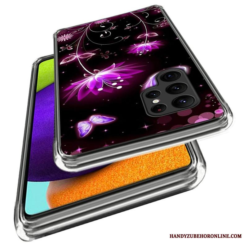 Puhelinkuoret Samsung Galaxy S25 Ultra 5g Kukkakuvio Mustalla Taustalla
