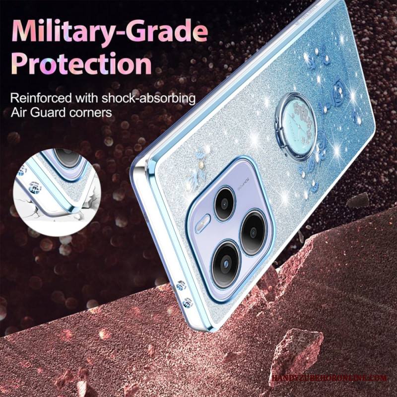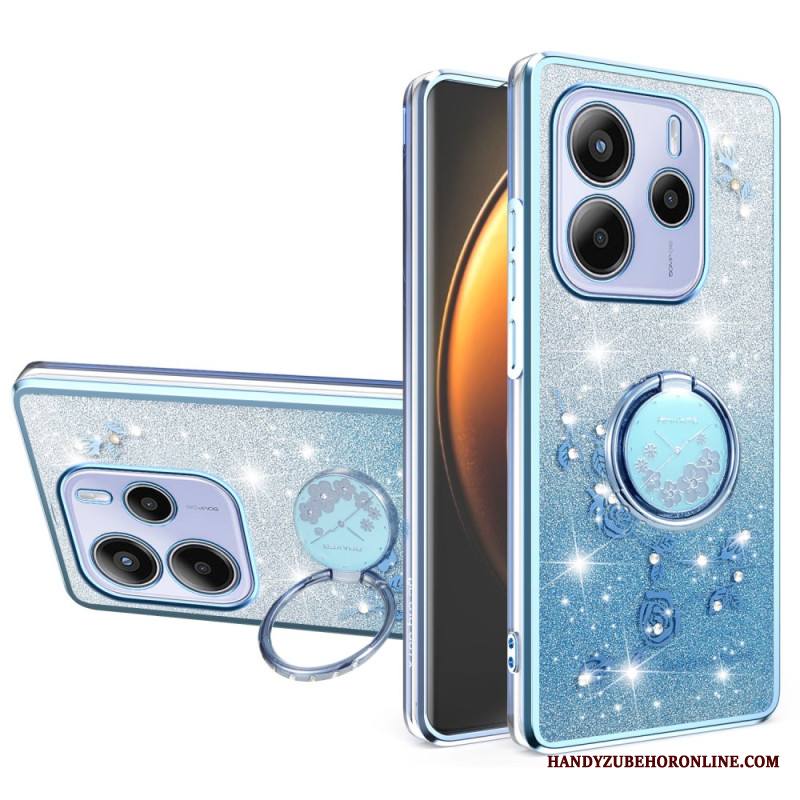 Kuori Xiaomi Redmi Note 14 4g Strassilla Ja Kukalla Koristeltu Sormusteline