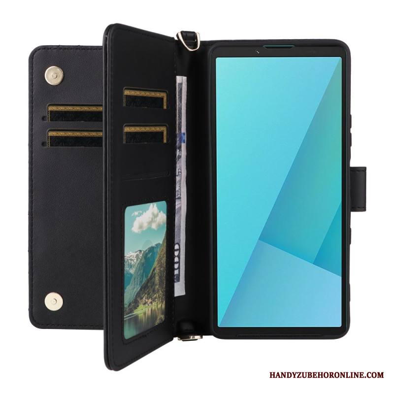Nahkakotelo Sony Xperia 10 Vii Tikattu Hihna Ja Rannehihna