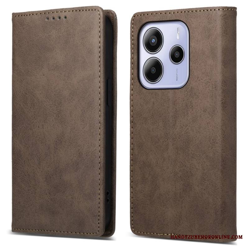 Nahkakotelo Xiaomi Redmi Note 14 4g Ykatu Ruskea Mokkanahkakuvio Suojakuori