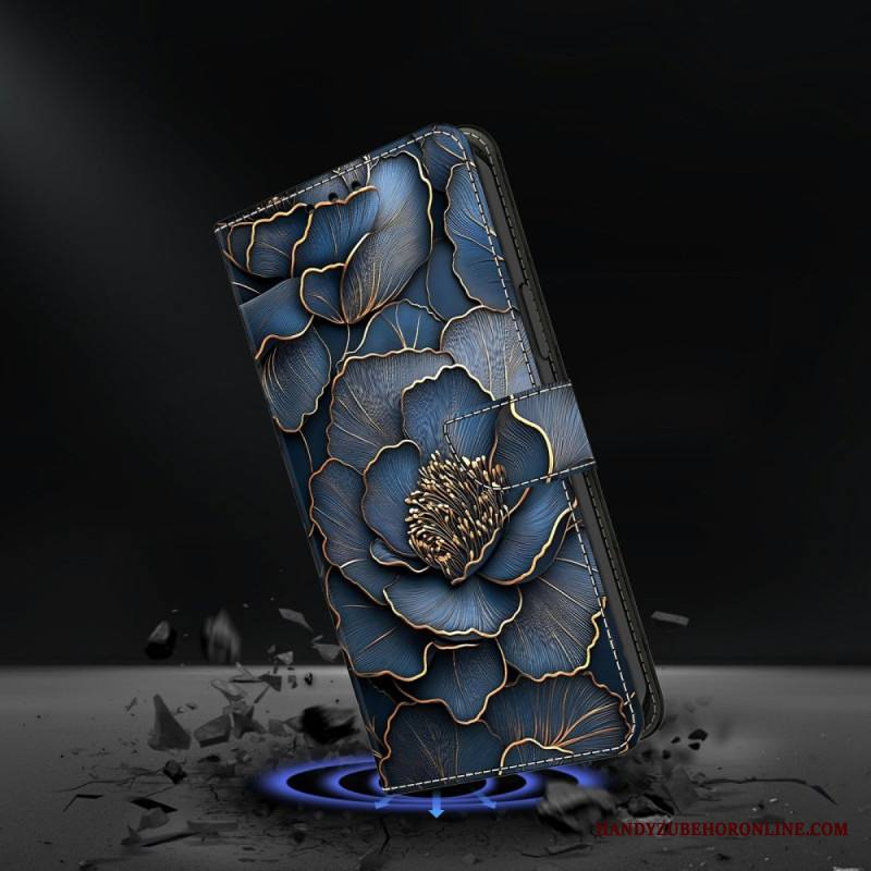 Nahkakotelo Xiaomi Redmi Note 15 5g Sininen Ja Kultainen Pioni