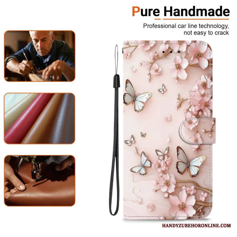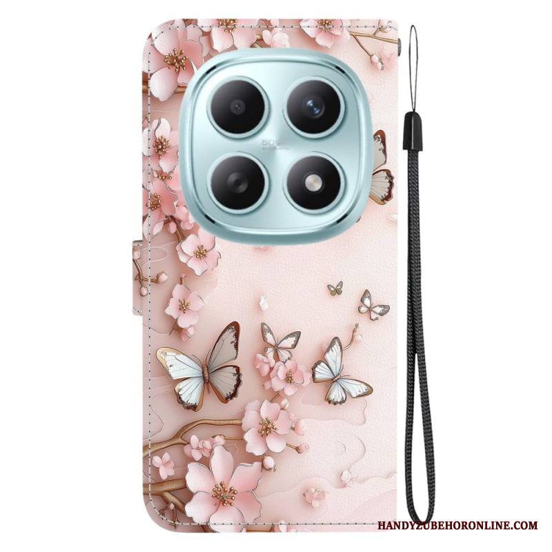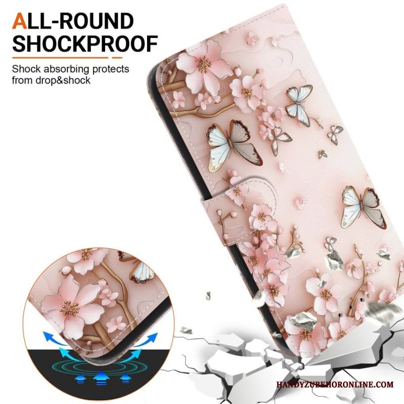 Nahkakotelo Xiaomi Redmi Note 15 5g Vaaleanpunaiset Perhoset