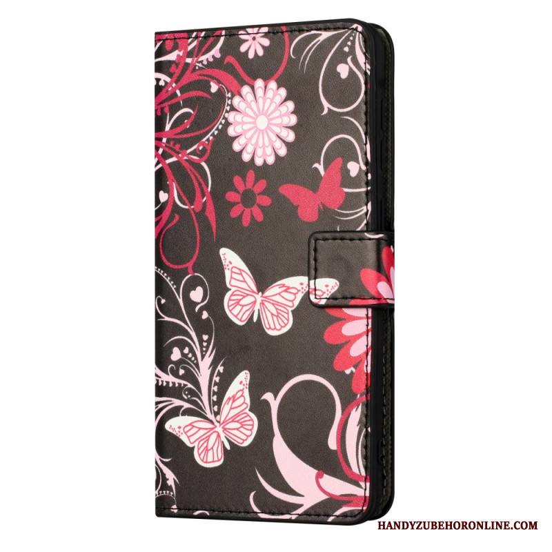 Nahkakotelo Xiaomi Redmi Note 15 Pro 5g Perhosia Mustalla Taustalla